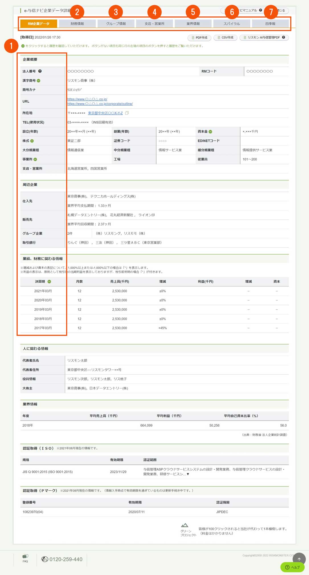 リスモンが独自に収集した企業情報をご提供します。 企業の基礎情報をはじめ、5期分超の決算データ、周辺企業、認証取得情報など、豊富な情報をご確認いただけます。