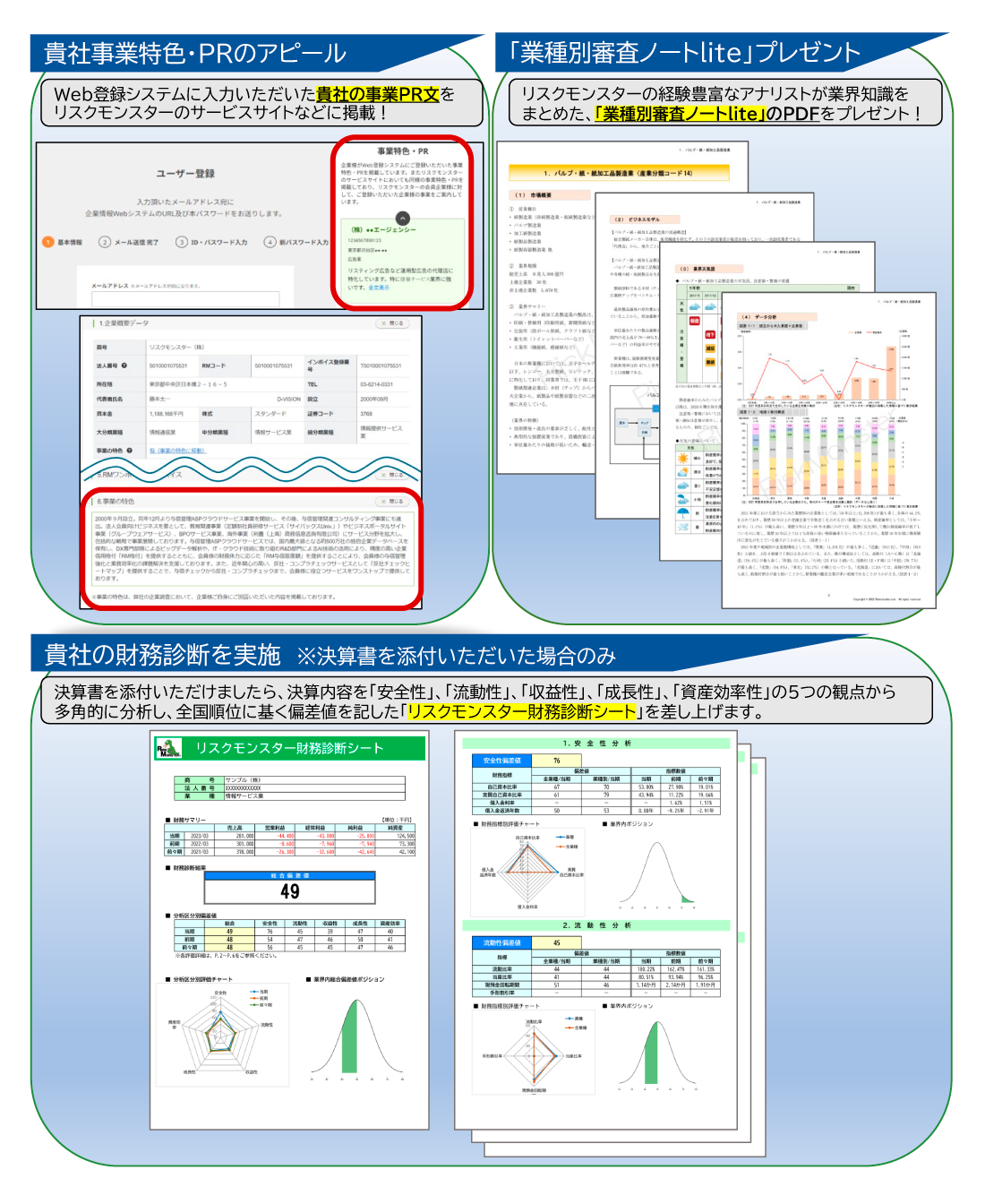 皆様が企業情報を更新することで、当社からは、取引を安心して行う材料をご提供できるようになるため、結果として、皆様の収益機会の拡大につながる取り組みとなります。