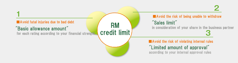 At RiskMonster, we refer to the financial statements provided by the members and the creditworthiness and scale of the business partners to calculate the amount of the credit limit that is safe for business transactions from the following three perspectives:
