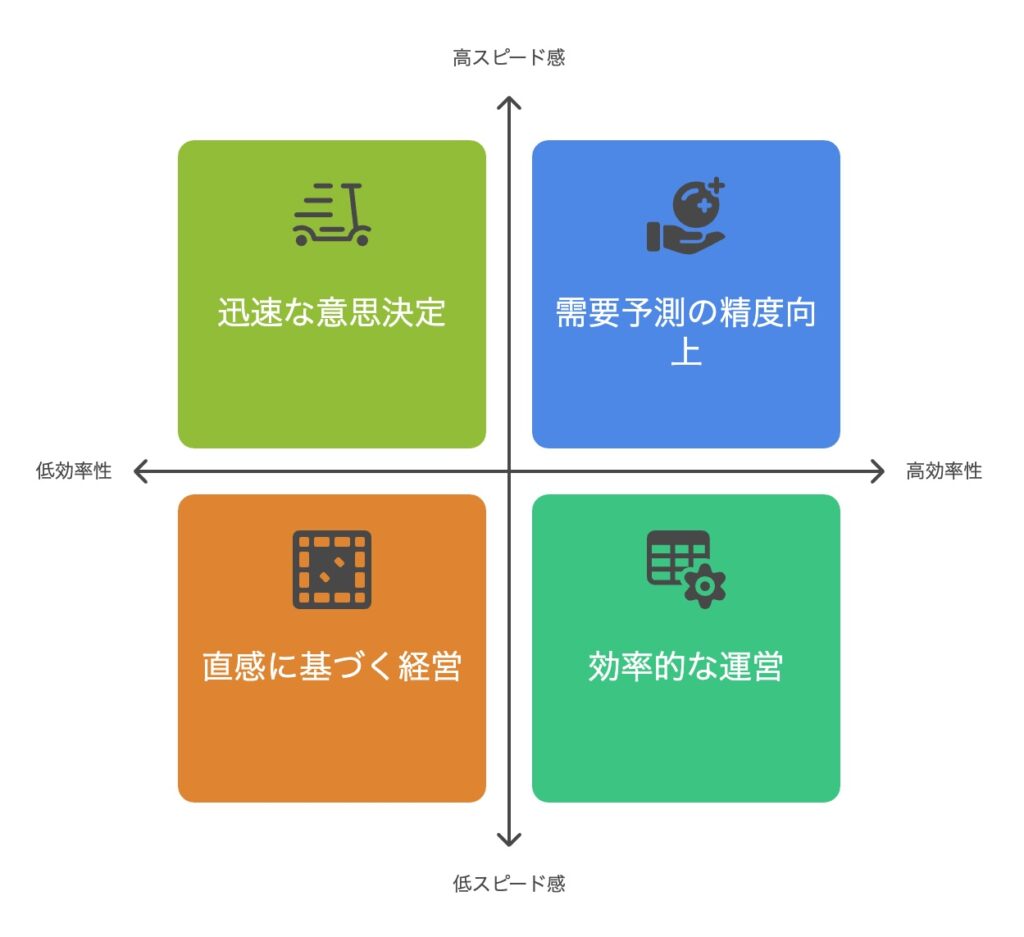 データ駆動型経営のメリットは<効率性・スピード感・正確性>で、多様化・複雑化した消費者のニーズにも柔軟に対応可能です。