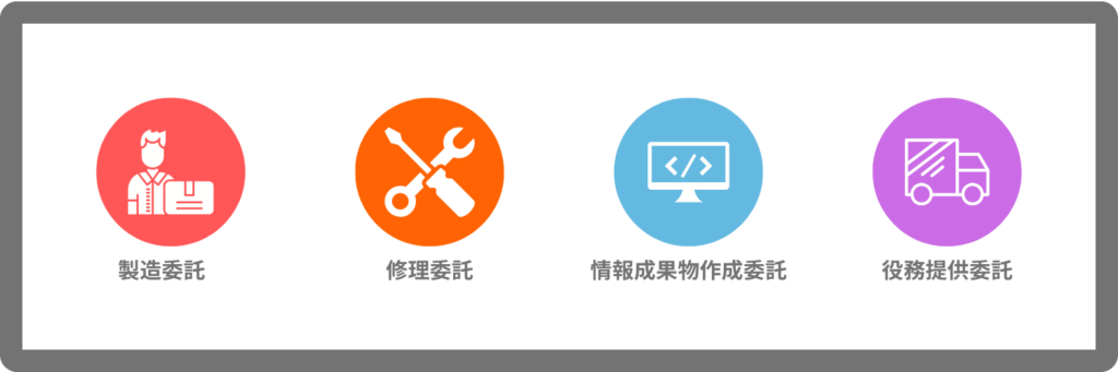 下請法の適用対象となる取引内容は「製造委託・修理委託・情報成果物作成委託・役務提供委託」の4つです。