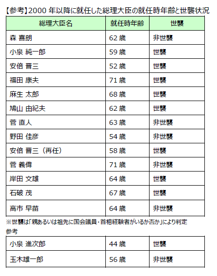 有権者に対し、総理大臣になってほしい人物の年齢について調査したところ、50代(回答率48.0%)が1位となり、40代(同21.5%)、60代(同15.7%)と続いた。