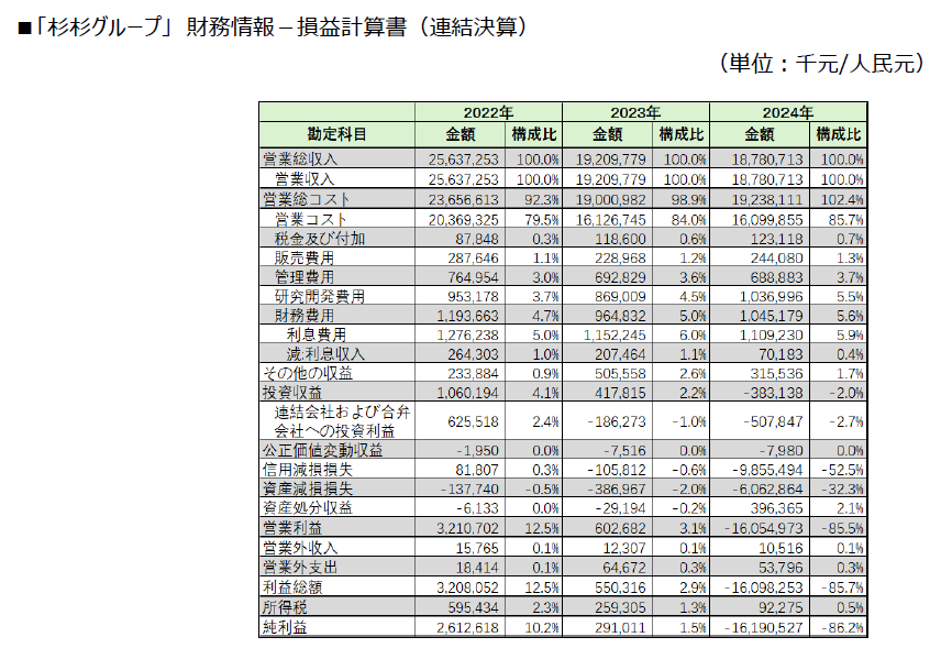 2024年 「杉杉股フン」において1996年の上場以来初となる通期赤字(▲3.67億元)を計上。