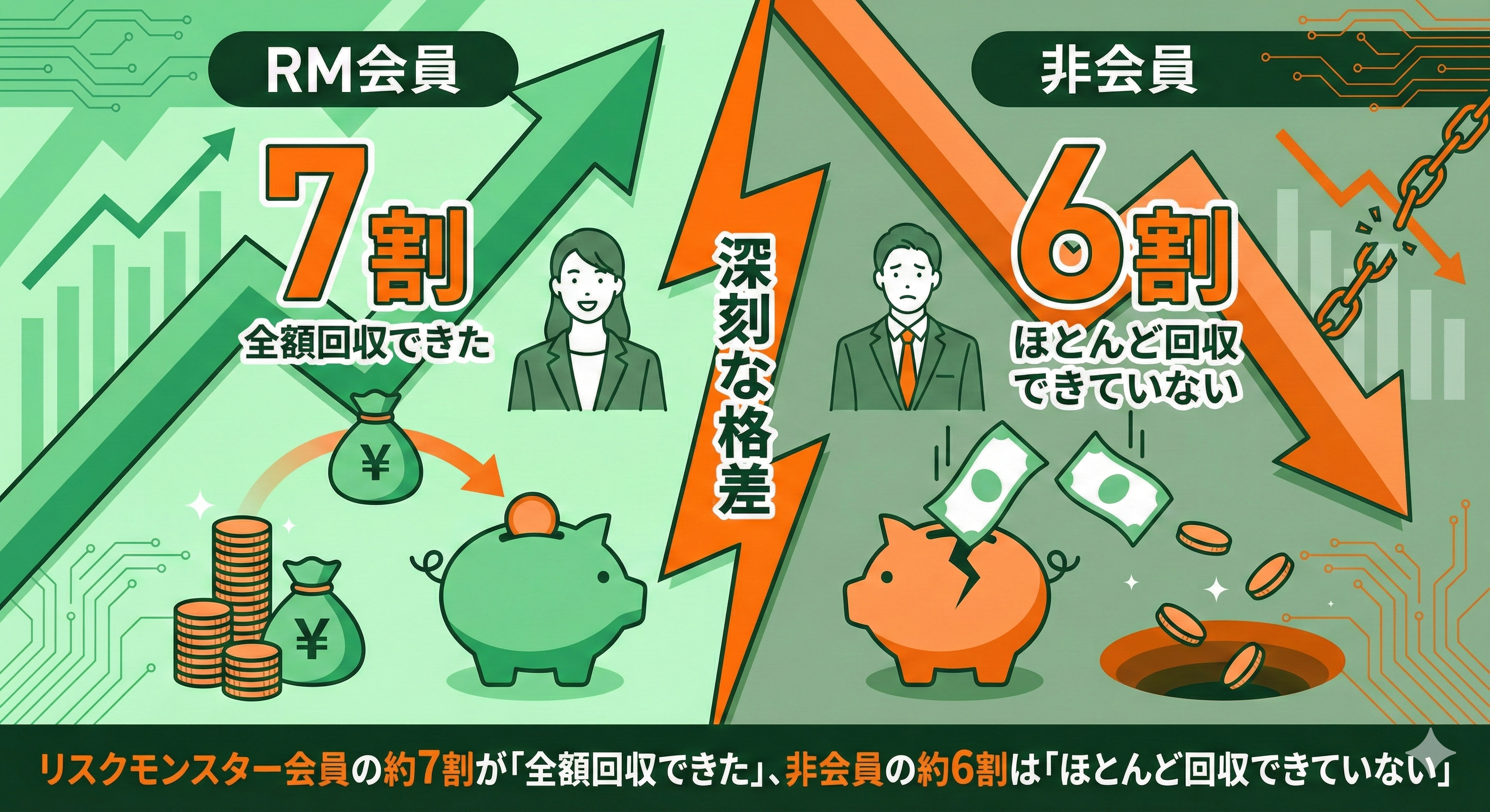 回収遅延が発生した場合、RM会員企業の約7割が「全額回収できた」と回答する一方、非会員企業の約6割は「ほとんど回収できていない」としています。