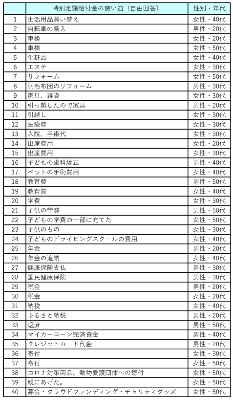 - 調査結果発表:第1回 特別定額給付金の使い道アンケート(リスモン調べ)