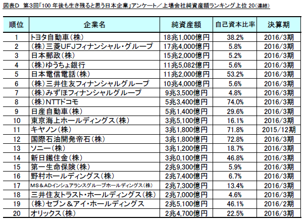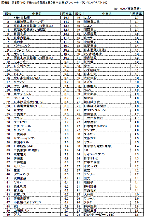・調査名称 : 第3回「100年後も生き残ると思う日本企業」調査