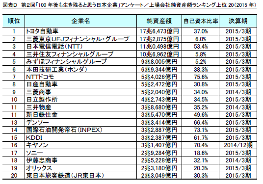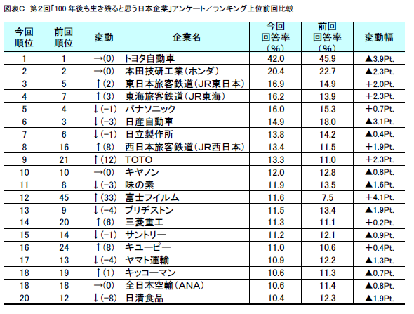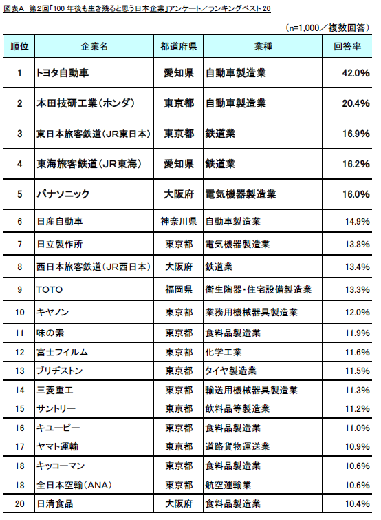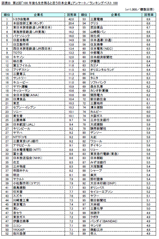 ・調査名称 : 第2回 「100年後も生き残れると思う日本企業」調査