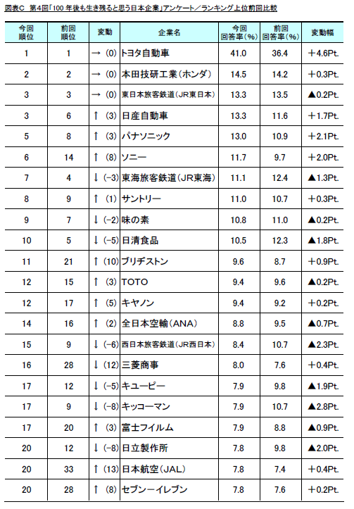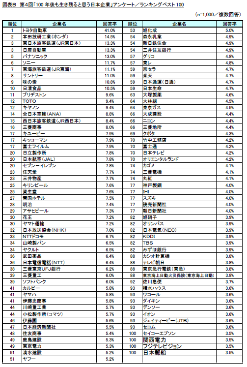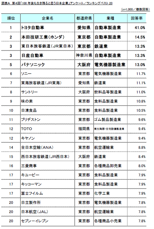 ・調査名称 : 第4回「100年後も生き残ると思う日本企業」調査