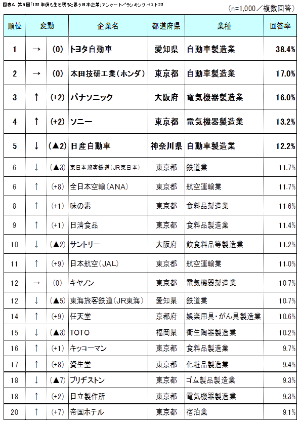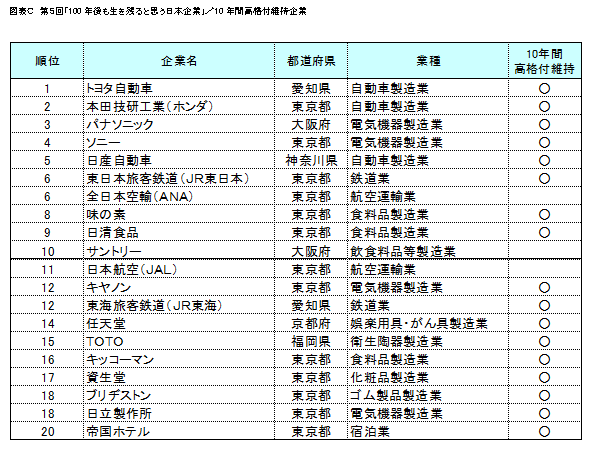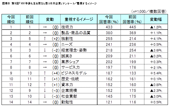 ・調査名称 : 第5回「100年後も生き残ると思う日本企業」調査