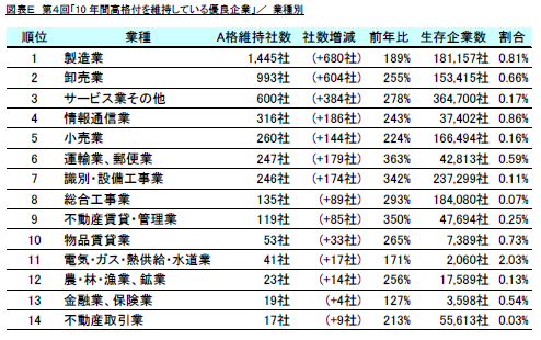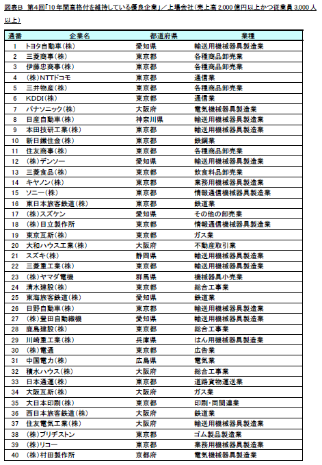 第4回「10年間高格付を維持している優良企業」調査