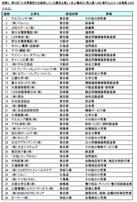 ・調査名称 : 第4回「10年間高格付を維持している優良企業」調査