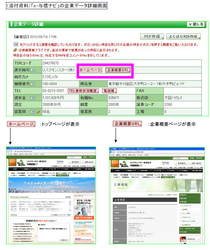 リスクモンスターが提供する与信管理ASPサービスの新サービス 企業データ詳細に約10万社の企業ホームページURLデータを会員企業向けに提供