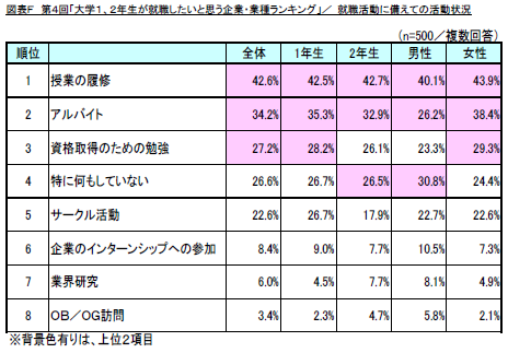 ・調査名称 : 第4回「大学1、2年生が就職したいと思う企業・業種ランキング」調査