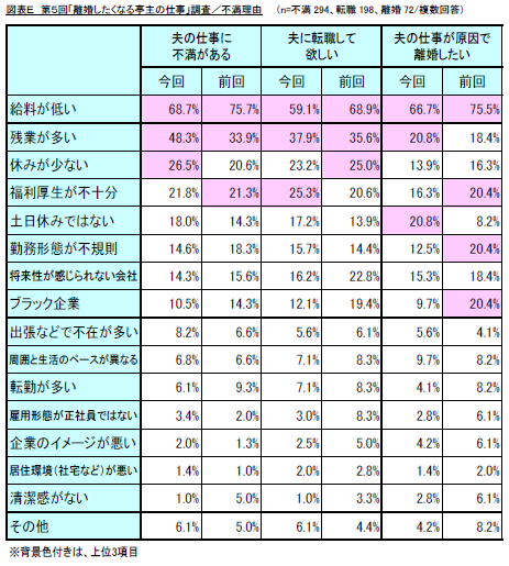 夫の仕事が原因で離婚を望む妻、前回調査より増加