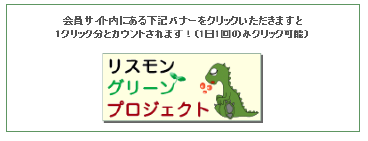 本プロジェクトは、与信管理ASPサービスに表示される以下の該当ロゴを会員企業様がクリックすると、売上金の一部を環境リレーションズ研究所が運営する森林再生プロジェクト「Present Tree」に、リスクモンスターが代わって寄付する植林活動です。会員企業様からのクリックが、合計100クリックとなるごとに1本植樹いたします。