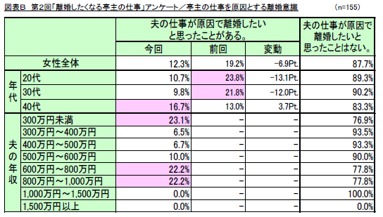 ・調査名称 : 第2回「離婚したくなる亭主の仕事」調査