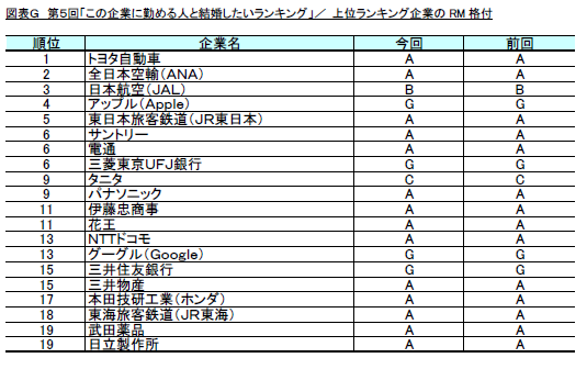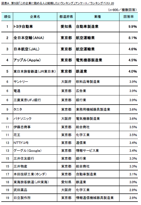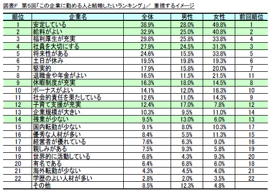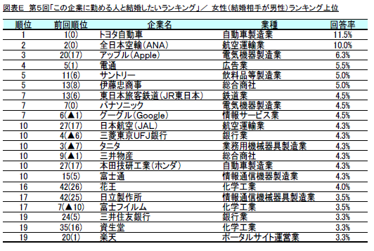 第5回「この企業に勤める人と結婚したいランキング」調査