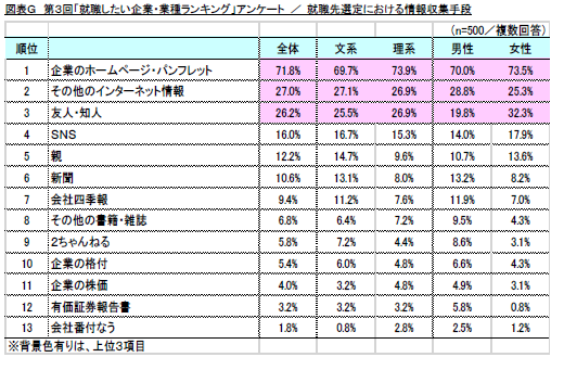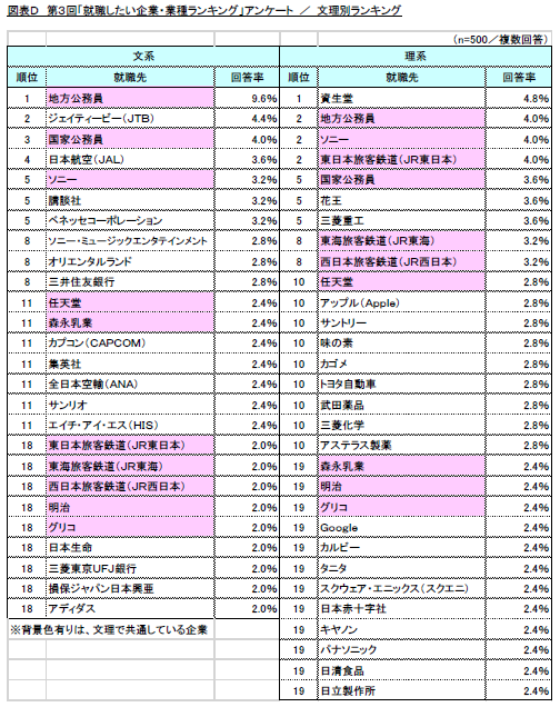 ・調査名称 : 第3回「就職したい企業・業種ランキング」調査