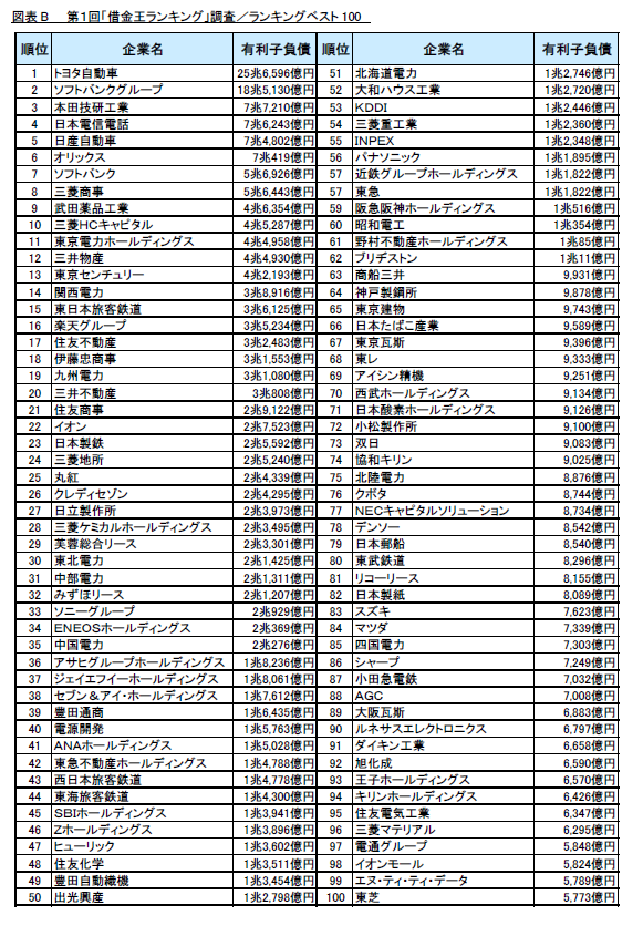 【訂正】調査結果発表:リスモン調べ 第1回「借金王ランキング」調査実施~借入にも戦略が必要!借金を上手に運用しているのはどの企業?!~