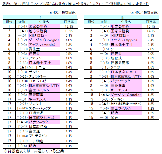 第10回「お子さん/お孫さんに勤めてほしい企業」調査