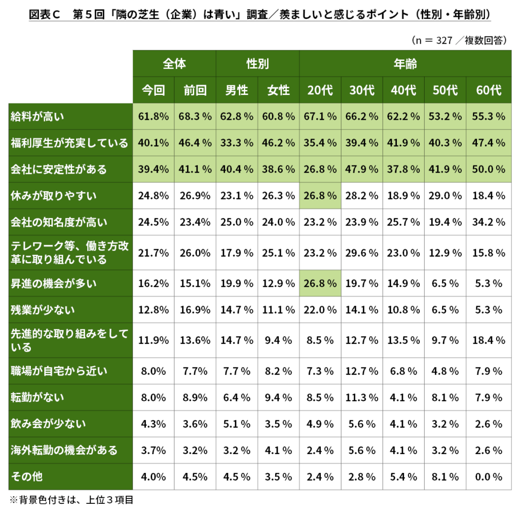 調査結果発表:第5回「隣の芝生(企業)は青い」調査実施 ~企業の羨ましく見えるポイントは“給与”がトップ、“テレワーク状況”も影響~