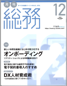 「月刊総務 12月号」に、サイバックスuniv.eラーニング「基礎から学ぶ反社取引管理(基礎編/実務編)」が掲載されました。