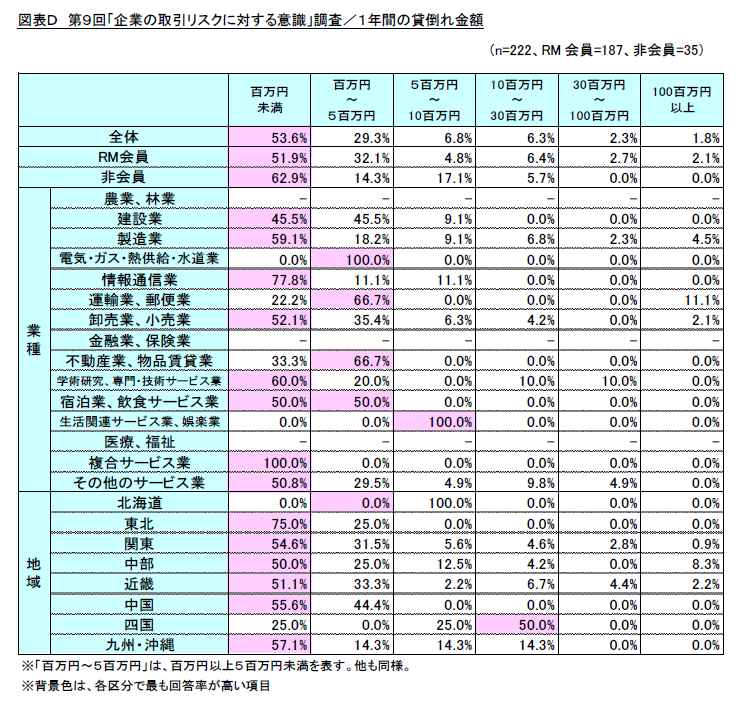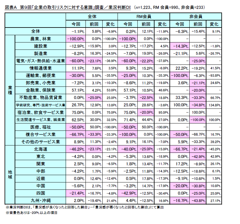 ・調査名称 : 第9回「企業の取引リスクに対する意識」調査