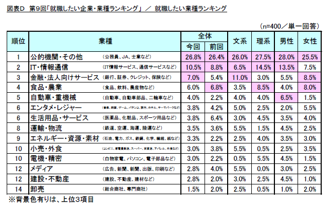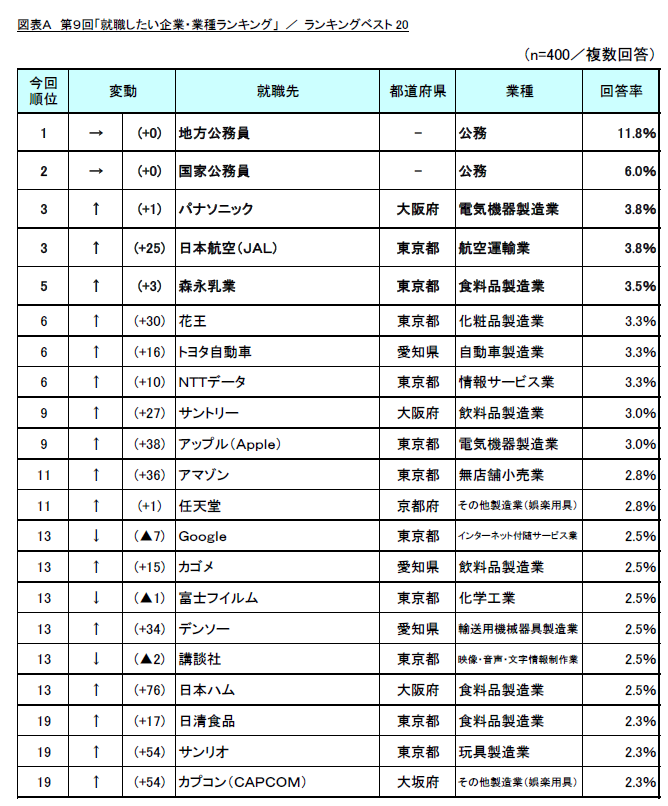 調査結果発表:第9回「就職したい企業・業種ランキング」調査 ~公務員人気変わらずも回答率減少、就活開始時期に前倒しの傾向も~