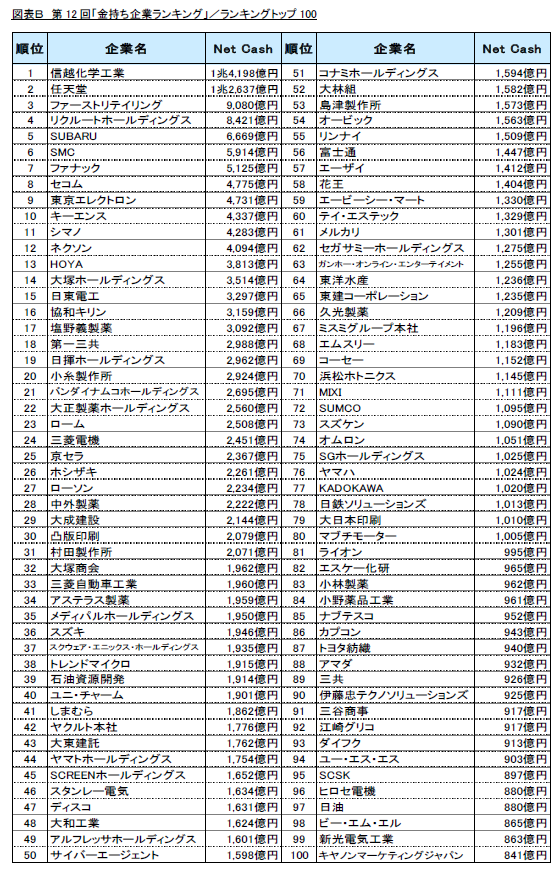 「Cash is King」という言葉があるように、現金の保有は企業経営において最重要といえる要素ですが、企業や経済の成長のためには、カネを循環させるという考え方もまた非常に重要です。その観点で、本ランキングの上位企業には、自社の安定と成長のバランスを取りながらも、日本経済への積極的な貢献も期待されます。