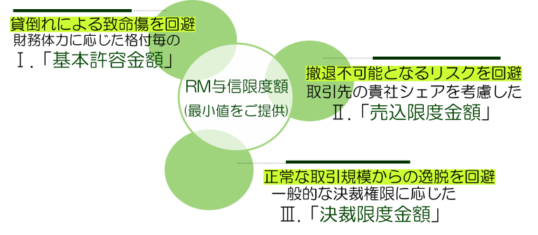 日本・中国での、長年の与信管理業務の経験を基としたロジックにより与信限度額を算出いたします。
