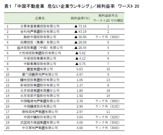 調査結果発表:リスモン調べ「中国不動産業 危ない企業ランキング」調査 ~財務指標ごとにワースト20社をピックアップ~