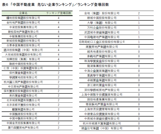 リスモン調べ「中国不動産業 危ない企業ランキング」調査