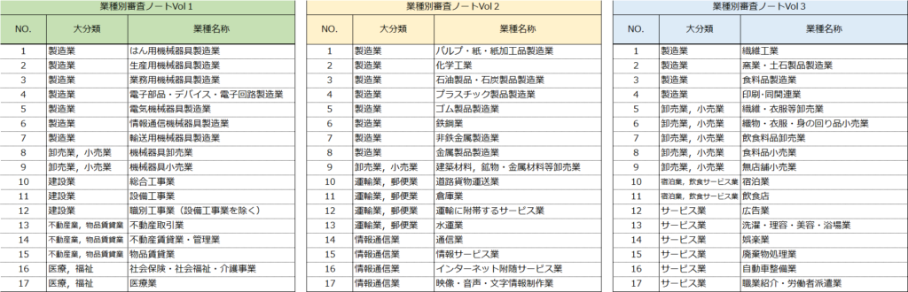 ■各業種別審査ノートに掲載の業種一覧
