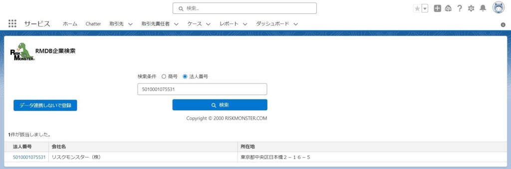 ※Riskmoster for Salesforce(ベータ版)は、2025/5/15に「Rismon企業データ free for Salesforce│与信・反社チェックのリスクモンスター」に名称変更しました。
