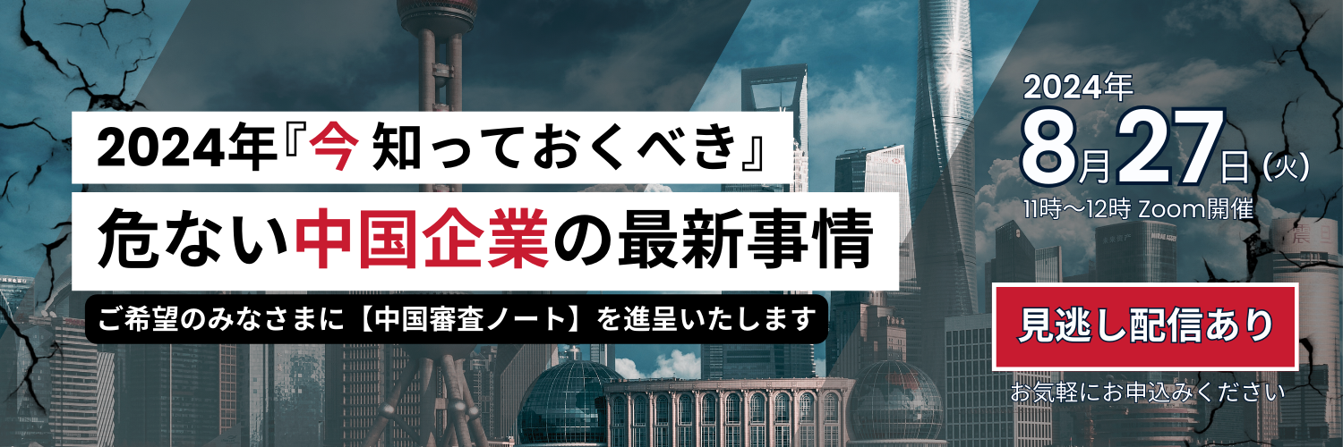 セミナー名 : 2024年『今 知っておくべき』危ない中国企業の最新事情