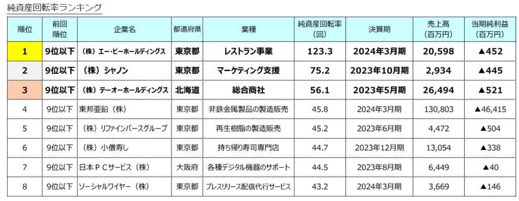 (1)小さくても力持ち!「純資産回転率」ランキング