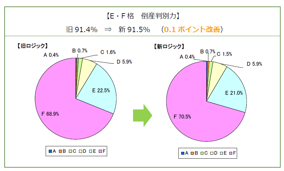 今回実施する「RM格付ロジック」改定により、倒産判別力0.1ポイントの改善を見込んでいます。