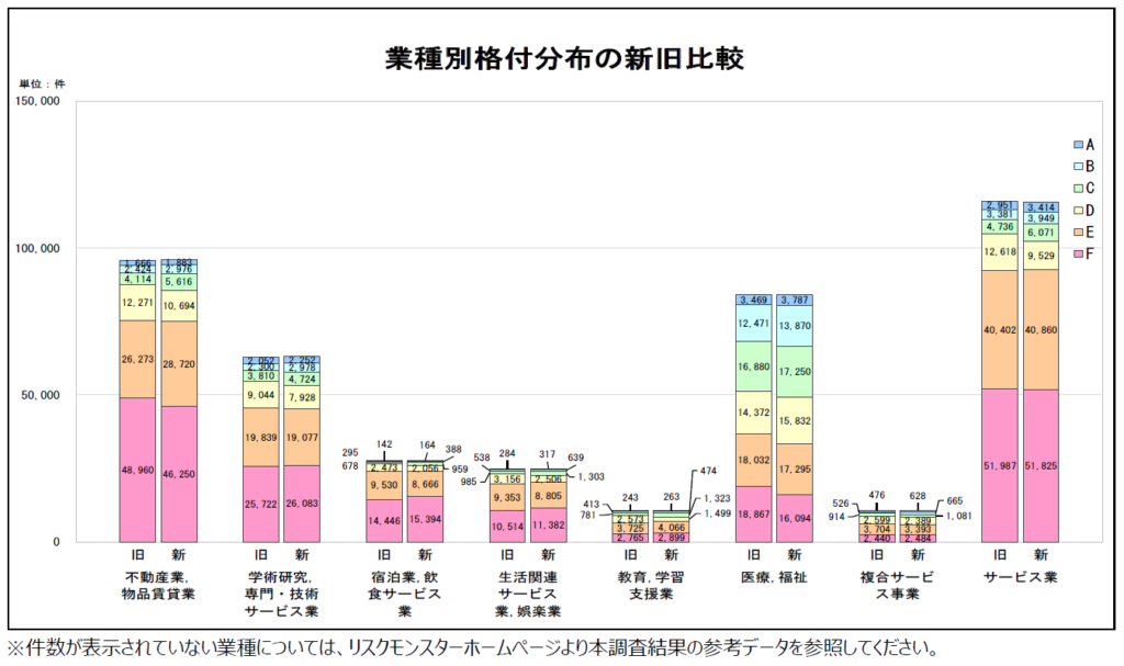 今回の改定によって低格付企業の再評価が実施され、「E格からF格」、「D格からE格」への格下げがそれぞれ約5万件生じ、格下げ企業数が格上げ企業数を上回る結果となりました。(図表B)