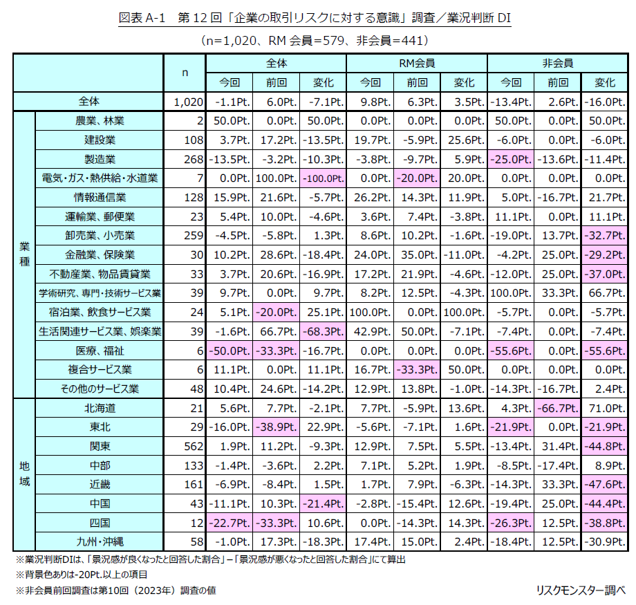 業況判断DIはマイナスに転換 ~貸倒れ・回収遅延が増加する中、RM会員は低コストで取引リスクを抑制~ 第12回「企業の取引リスクに対する意識」調査結果