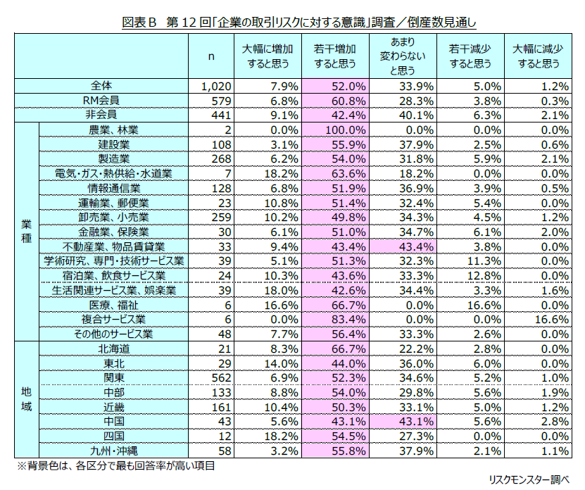 ・調査対象者:リスクモンスター与信管理サービスを利用する会員(RM会員)および非会員