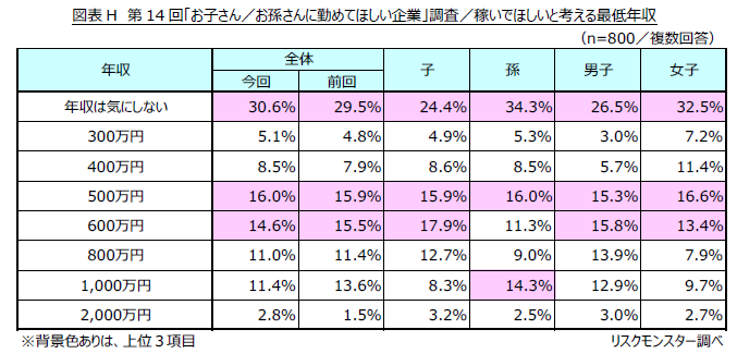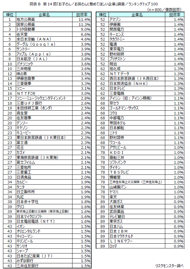 ・調査名称 : 第14回「お子さん/お孫さんに勤めてほしい企業」調査