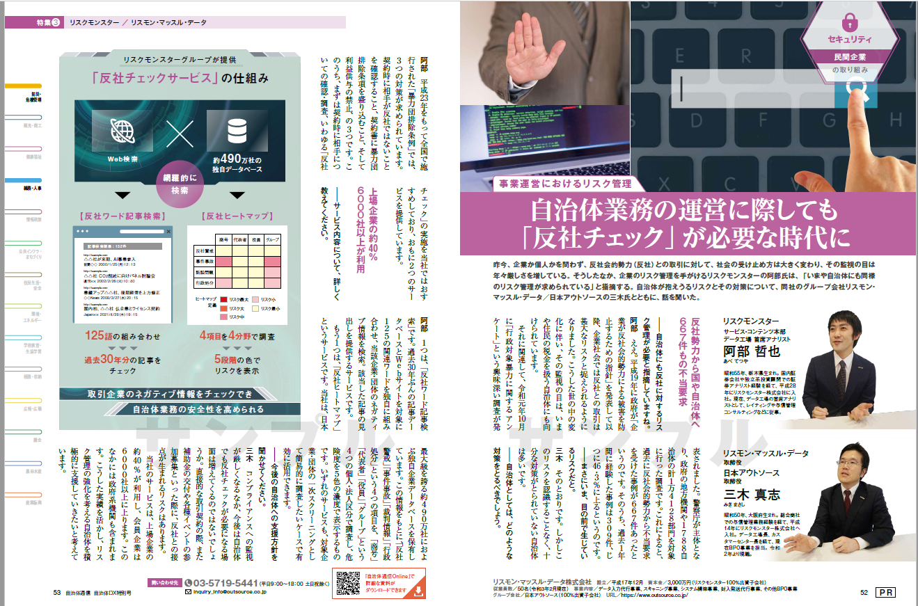 「自治体通信 自治体DX特別号」に当社出稿記事(自治体業務の運営に際しても「反社チェック」が必要な時代に)が掲載されました。