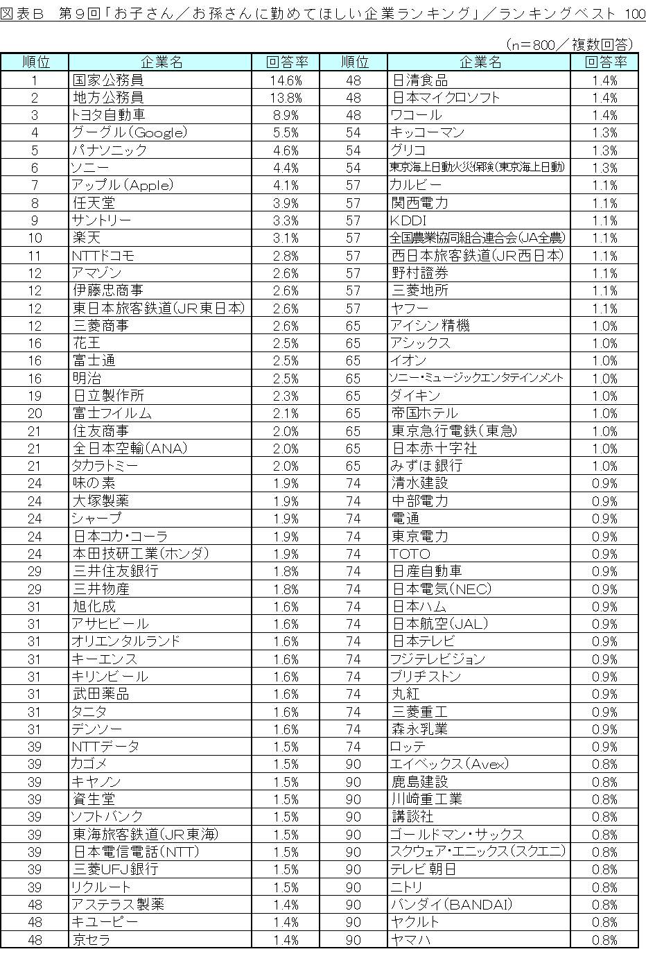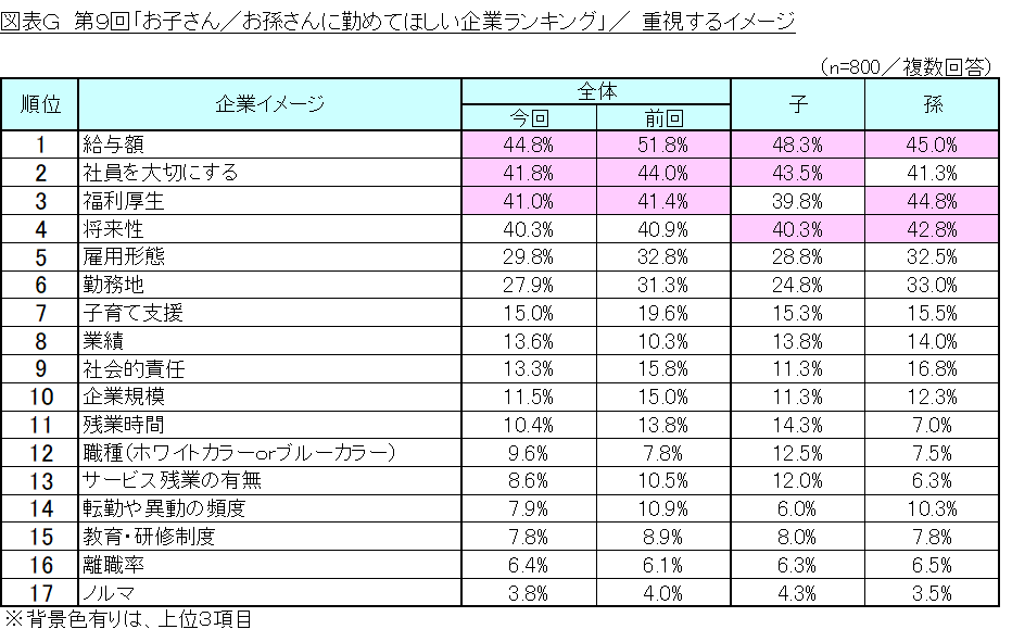 ・調査名称 :第9回「お子さん/お孫さんに勤めてほしい企業」調査