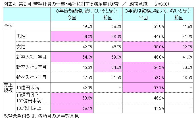 ・調査名称 : 第2回「若手社員の仕事・会社に対する満足度」調査