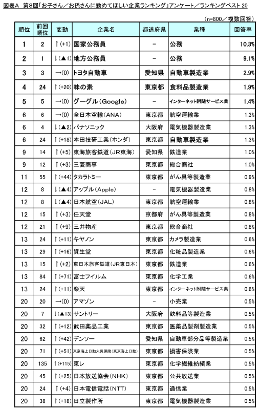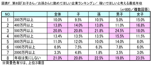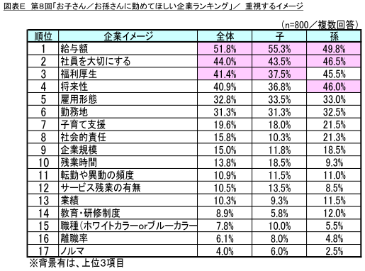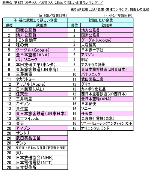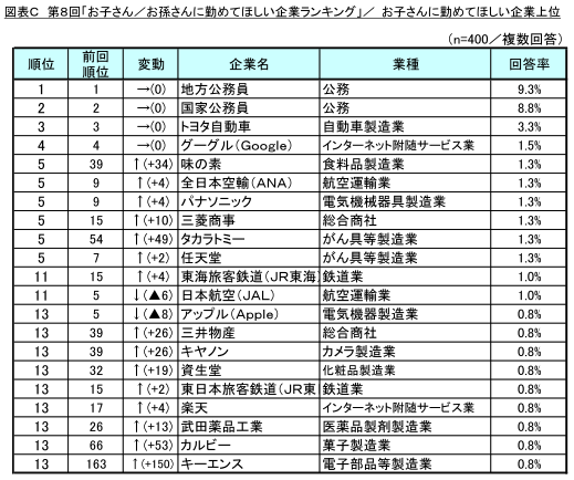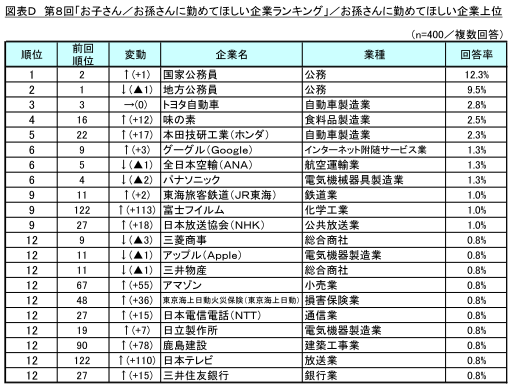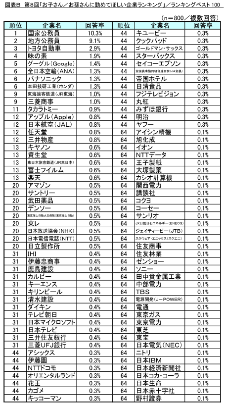 ・調査名称 : 第8回「お子さん/お孫さんに勤めてほしい企業」調査