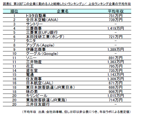 [4] 「この企業に勤める人と結婚したいランキング」/平均年収との比較