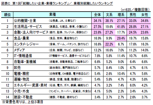 ・調査名称 : 第1回「就職したい企業・業種ランキング」調査