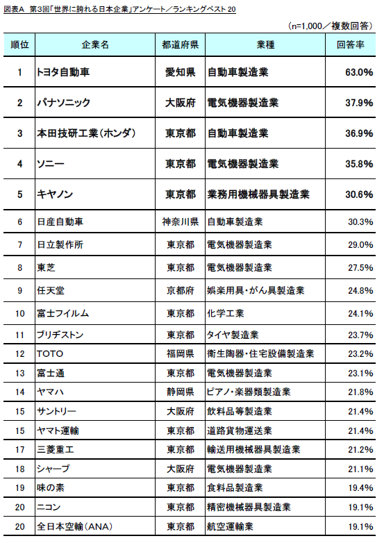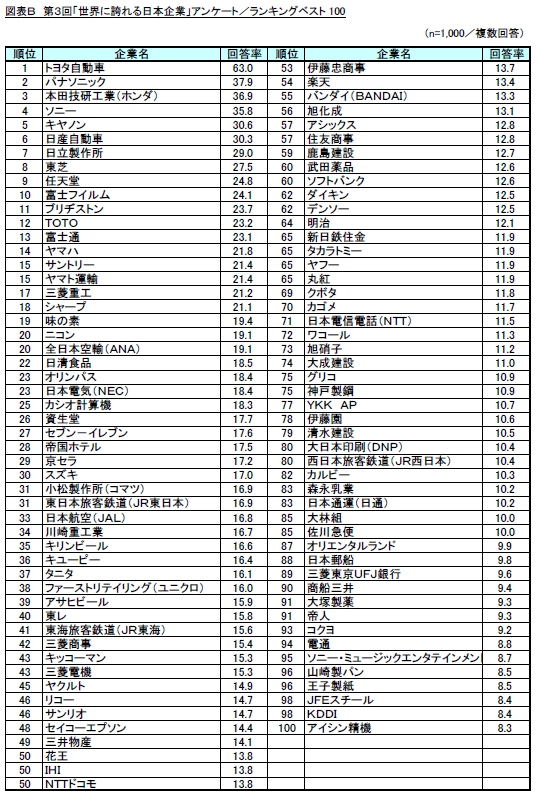 ・調査名称 : 第3回「世界に誇れる日本企業」調査