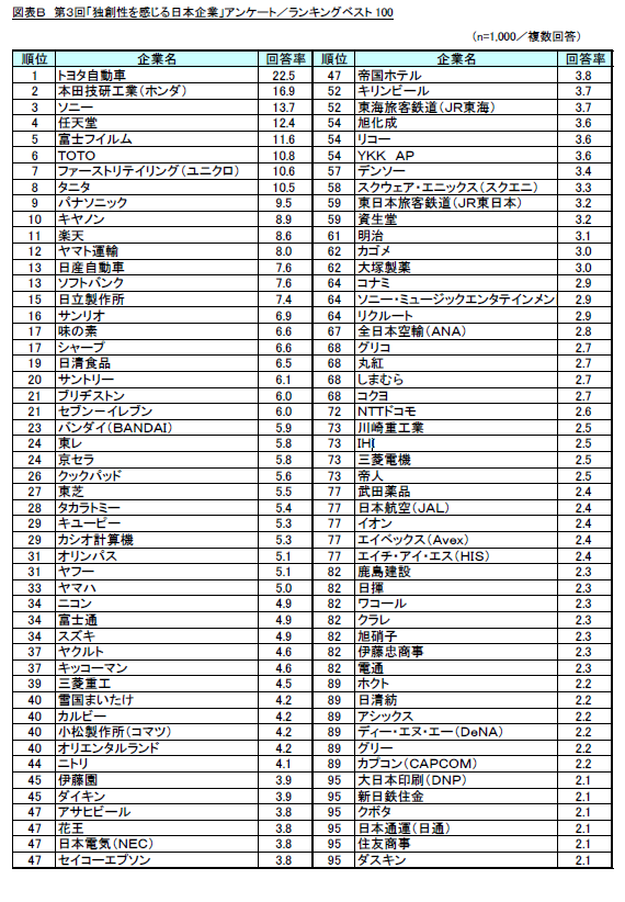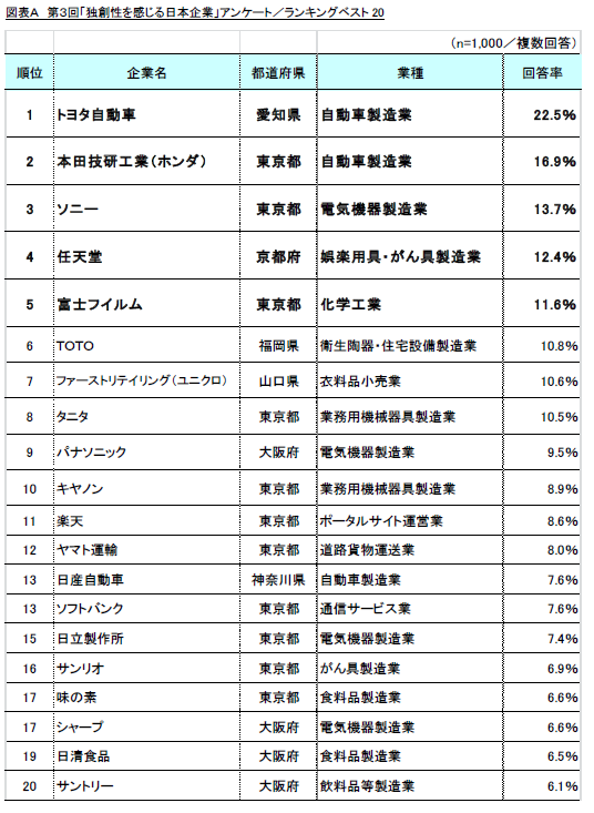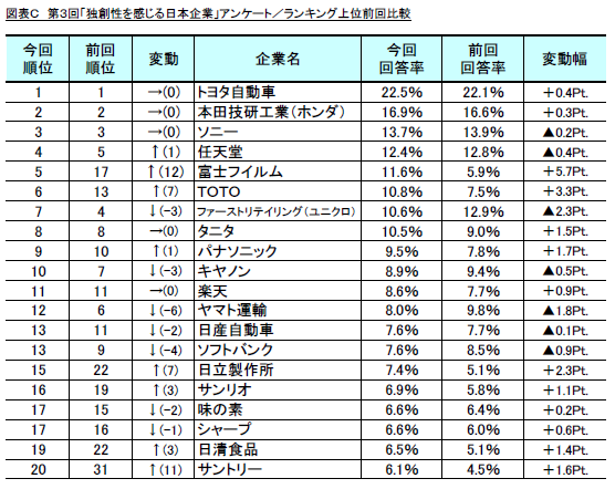 第3回「独創性を感じる日本企業」調査