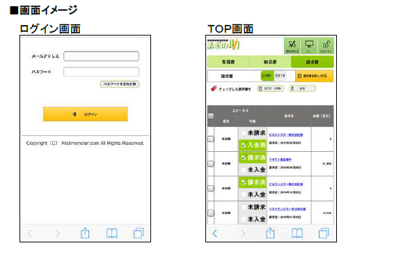 与信管理ASPクラウドサービスを提供するリスクモンスター株式会社(以下リスモン、本社:東京都中央区、http://www.riskmonster.co.jp)は、2013年1月よりサービスを提供しているクラウド型請求書発送代行サービス「請求の助」(以下 本サービス)において、スマートフォン環境におけるサービス提供を開始いたしました。